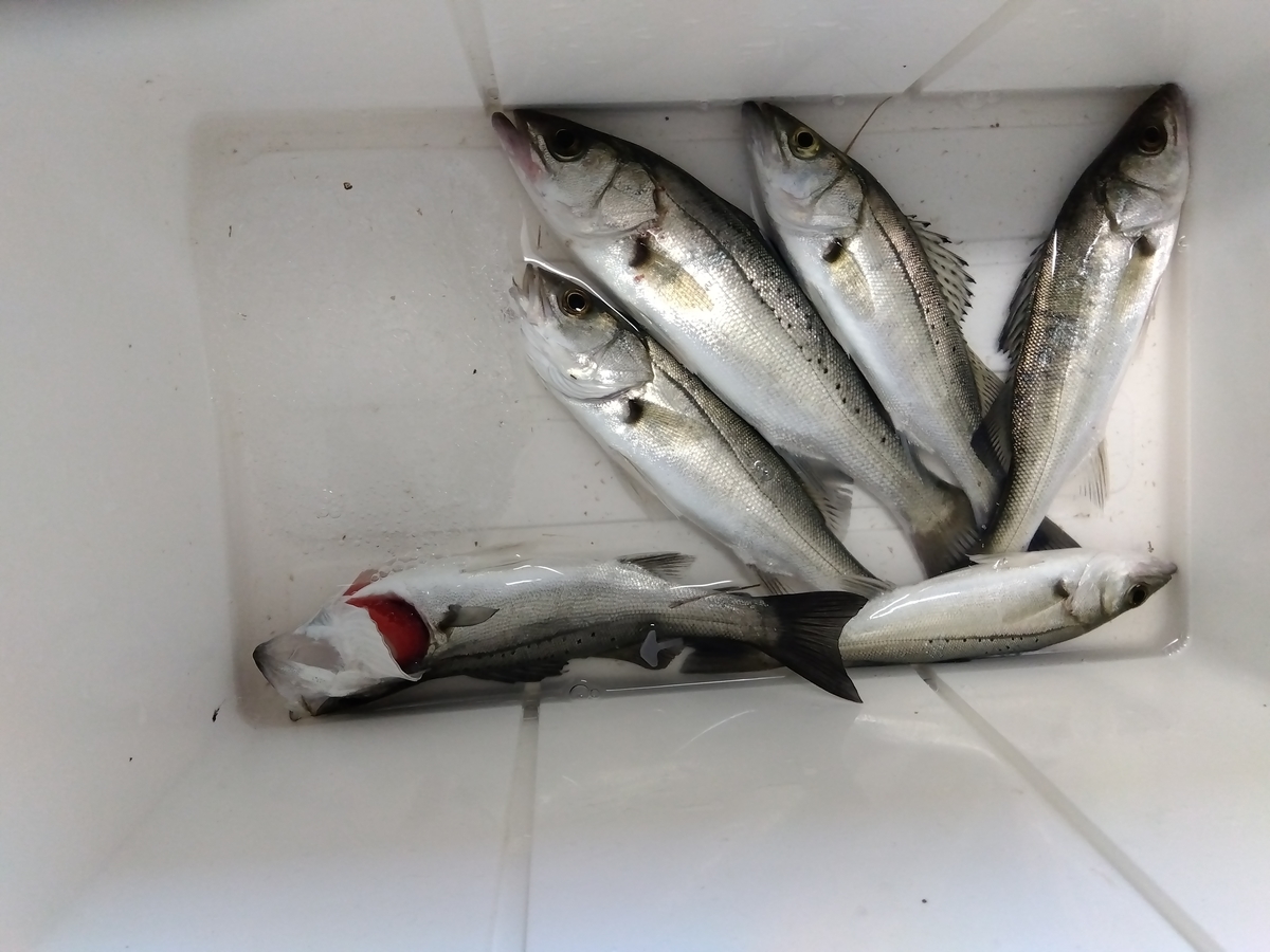 隣の人が何やらヒットしているようで何かなーと見てると・・・セイゴ・・・微妙なサイズ。期待から不安へと変わっていきます。